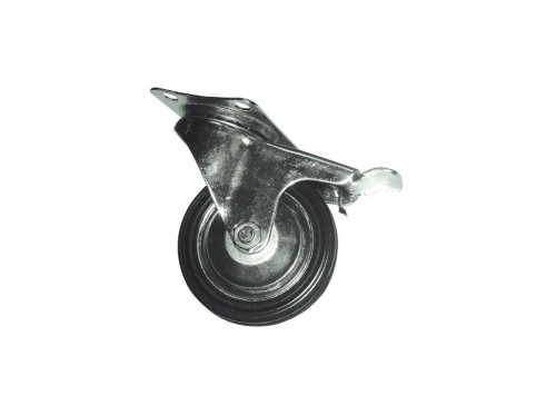 Otočné kolečko s brzdou, které je určeno pro nerovné a tvrdé povrchy, často montováno u kontejnerů na tříděný odpad.