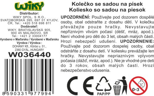 Kolečko. Délka 70 cm. 3 varianty: modrá, zelená, červená. Součástí balení je sada hraček na písek.
