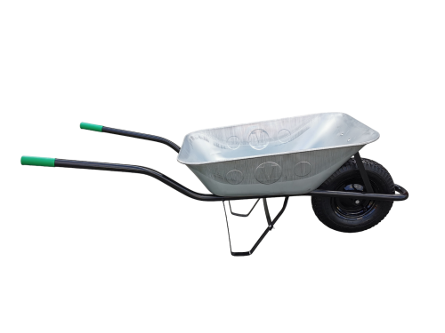 Stavební kolečko 80l, nafukovací kolo, pozinkovaná korba. Toto kolečko se hodí jak na stavbu na převážení cihel, kamení a písku ale také na zahradu na dříví, padlé listí.