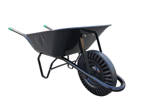 Objem: 80l Barva: černá Kolo: plná pryž Korba: tažená Rozměr kolečka: 1630x570x560 Rozměr korby: 820x570x190-260 Rozměr kola: 390 Výška rukojetí nad zemí: 530 Provedení: s pevnou osou Nosnost: 100 kg