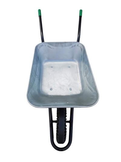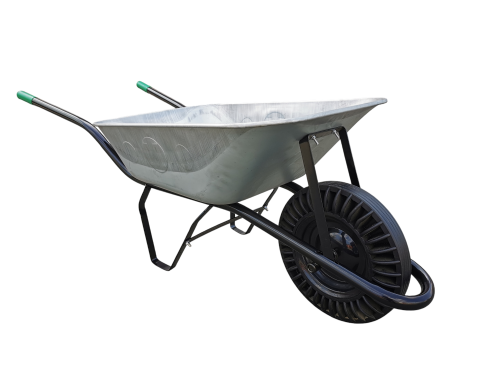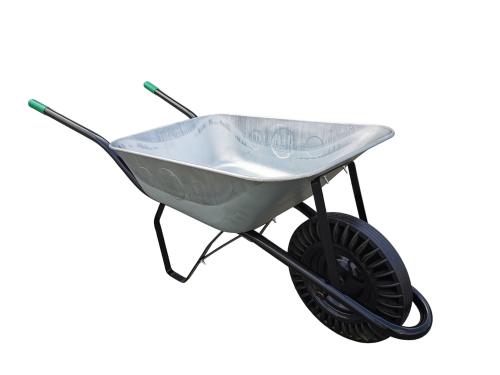 Objem: 80l Barva: pozink Kolo: plná pryž Korba: tažená Rozměr kolečka: 1630x570x560 Rozměr korby: 820x570x190-260 Rozměr kola: 390 Výška rukojetí nad zemí: 530 Provedení: s pevnou osou Nosnost: 100 kg