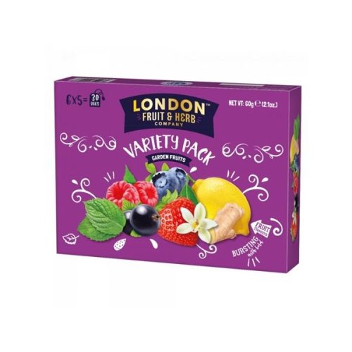 Kolekce čajů London Fruit & Herb Zahradní plody, box obsahující 30 sáčků V boxu najdete 6 příchutí ovocných čajů po 5 sáčcích London Fruit & Herb jsou vzrušující čajové směsi, které uspokojí Vaši žízeň …