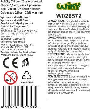 Kolíčky dřevěné 2,5 cm, 25ks + provázek