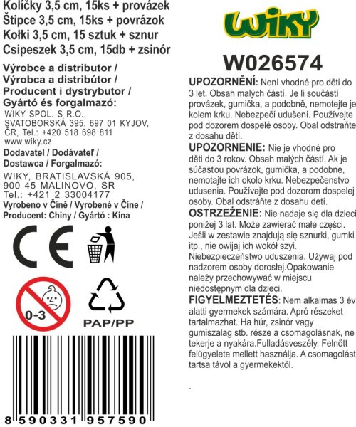 Kolíčky barevné 3,5 cm, 15 ks + provázek
