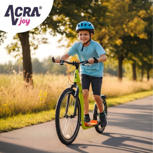Poohlížíte se po rychlé koloběžce se stylovým designem? Sportovní koloběžka Acra Joy Racer je vhodná pro začátečníky i pokročilé jezdce. Využijete ji jak pro jízdu po silnici, tak na cyklostezce nebo v lehkém terénu. Pohodlně s ní dojedete do školy nebo do práce. Má nafukovací kola o velikosti 26” (přední) a 20” (zadní). Kvalitní rám z odlehčené oceli uveze jezdce o hmotnosti do 120 kg.