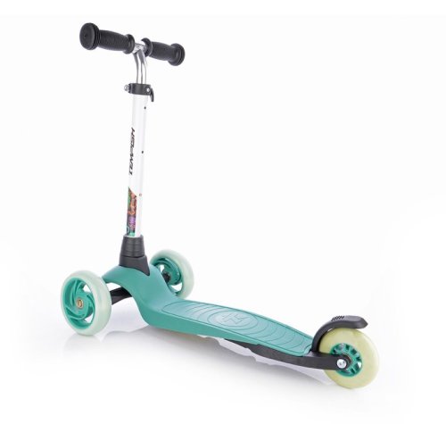 Bezpečná skládací koloběžka se zvýšenou stabilitou pro začínající sportovce. Přední náprava se natáčí klasicky jako u běžných koloběžek, nikoli přenášením váhy jezdce na stranu. Koloběžka má omezení maximálního úhlu vytočení.