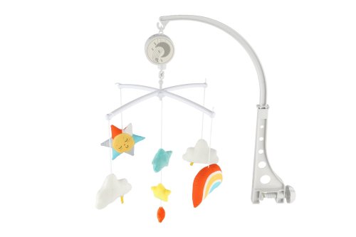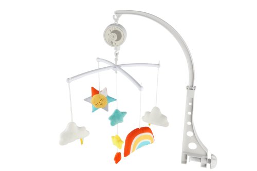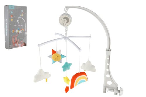 Kolotoč nad postýlku s plyšovými barevnými hračkami miminko zabaví a pomůže mu usnout. Na každém ze čtyř plastových ramenech najdete duhu, sluníčko, mráčky a hvězdičky. Kolotoč hraje příjemnou melodii - má natahovací stojek. Rozměr krabice: 19 x 33 x 5,5 cm Vhodné od 6 měsíců