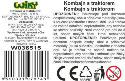 Kombajn s traktorem. Rozměry 12,5x5,5x6,5 cm. Na zpětné natažení. 3 varianty.