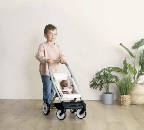 Všestranný kočárek pro panenky 3 v 1. Moderní multifunkční kočárek pro panenky lze díky vyměnitelné korbičce během chvilky přestavět na praktický sportovní kočárek pro panenky. Vrchní část lze v několika jednoduchých krocích sundat a panenku s sebou vzít kamkoli půjdete v praktickém košíku. Potahy kočárku jsou vyrobeny z robustní plastové tkaniny. Pro čištění je lze snadno otřít vlhkým hadříkem. Pro panenky do velikosti 42 cm. Panenka není součástí balení. Výška k ergonomické rukojeti je 65 cm. Přední kolečka otočná, kolečka s protihlukovou vrstvou. Průměr koleček 15,5 cm a 12,5 cm. Rozměry produktu (DxŠxV): 54,5 x 38,5 x 64 cm.