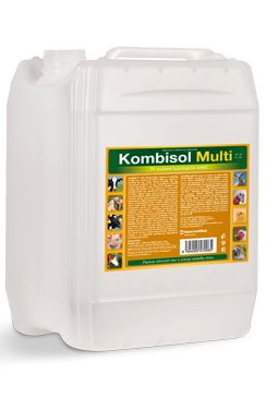 Problém: Při zvýšené fyziologické zátěži dochází v organismu k porušení vnitřního prostředí a jsou nastartovány metabolické procesy, které vedou k jejímu obnovení. Mnohé pochody jsou řízeny hormony, které vyžadují pro svoji syntézu vitaminy. Jejich nedostatek nebo nesprávná hladina takto snižuje užitkovost. Složení v 1 ml: vitamin A 5 000 m.j., vitamin D3 500 m.j., vitamin E 20 mg, cholinchlorid 100 mg, niacinamid 10 mg, D-panthenol 5 mg, vitamin B2 3 mg, vitamin B1 3 mg, vitamin B6 2 mg, vitamin K 1 mg, biotin 0,015 mg, vitamin B12 0,005 mg. Způsob aplikace: Kombisol Multi se podává zvířatům řádně rozředěný v pitné vodě nebo mléce. Preventivně po dobu 5 – 15 dnů v uvedených dávkách. Aplikaci lze opakovat po 3 – 4 týdnech. Roztok je nutno připravovat denně čerstvý, chránit před přímým slunečním světlem a co nejrychleji spotřebovat. Nepodávat neředěný přípravek! Dávkování: