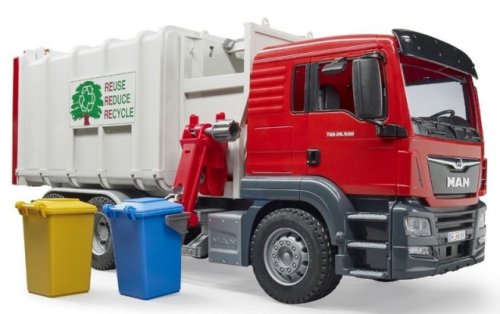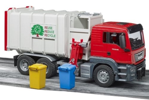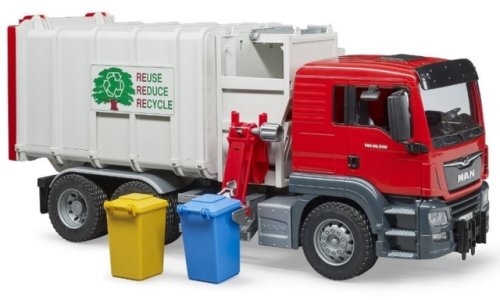 Bruder 03761 Nákladní auto MAN popeláři v šedo-červeném provedení má spoustu funkčních prvků, např. sklopnou kabinu, měkké profilované pneumatiky, pohyblivá zrcátka a další. Snad každý malý kluk chtěl být někdy popelářem. Umožněte to tomu vašemu s tímto stylovým popelářským autem. Balení obsahuje 2 popelnice. K modelu Bruder 3761 si můžete dokoupit spoustu dalšího příslušenství a doplňků Bruder a užít si tak ještě více zábavy. Vyrobeno v Německu, z kvalitních materiálů. Hlavní vlastnosti: spousta funkčních prvkůsklopná kabinapohyblivá zrcátka2 popelnicevyrobeno v Německu