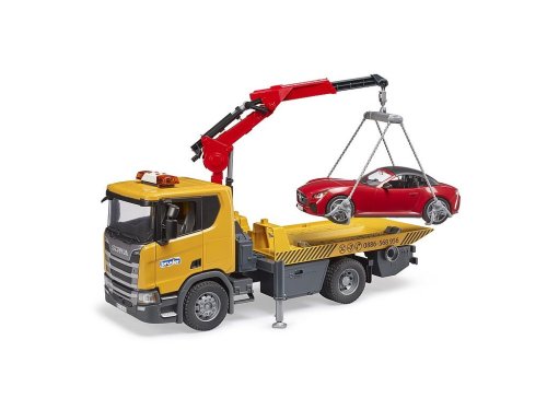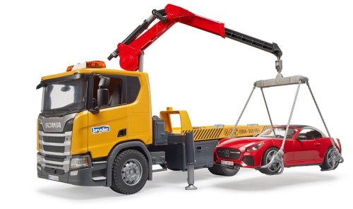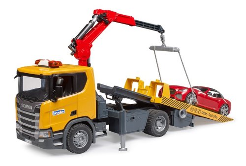 Pohodlné a robustní vozy BRUDER představují ve své nabídce řadu Scania Super R. Řada R se vyznačuje jedinečnou kombinací pohodlí a odolnosti. S novými modely od firmy BRUDER si děti mohou realisticky prožít různé situace. Plošinu lze spustit dolů a s její pomocí naložit vozidla. Kromě toho lze vozidlo naložit také zvedacím jeřábem. Ten lze vysunout a otáčet. Nakládací zařízení, které se skládá z řetězů a kolových drapáků, umožňuje bezpečné a rychlé zvedání a nakládání. Klíny pod kola a výklopné podpěry poskytují bezpečnou oporu. Nová, detailně propracovaná kabina Scania má otevíratelné dveře a sklopná zrcátka. Světelný a zvukový modul je již také nainstalován. Nový BRUDER Roadster má odnímatelnou střechu a nabízí prostor pro každou figurku z bworld. Pro ještě větší zábavu při hraní má BRUDER Roadster nový systém výměny kol. Baterie: 3 x LR44 součástí. Vyrobené z vysoce kvalitních plastů, jako je ABS. Měřítko 1:16. Lze použít pro hru uvnitř i venku. Rozměry auta: 28 x 18,5 x 57,5 cm. Rozměry balení: 30,5 x 18,5 x 66 cm. Věk: 4+