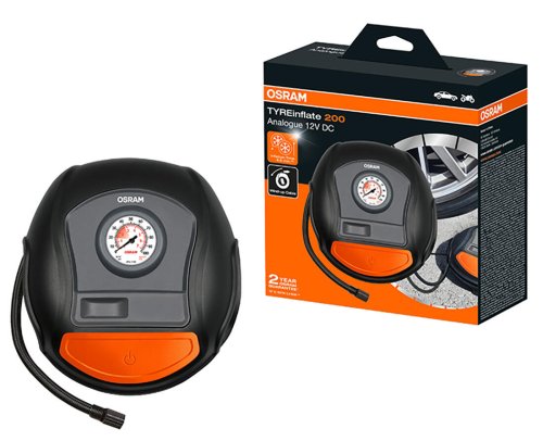 Automobilový kompresor OSRAM TYREinflate je kompaktní a snadno použitelný kompresor, díky němuž je kontrola a doplňování tlaku v pneumatikách rychlá, jednoduchá a intuitivní. Tento produkt se vyznačuje vysokou kvalitou zpracování, krátkou dobou nafouknutí pneumatiky, velkým a čitelným tlakoměrem a velkým tlačítkem zapnutí / vypnutí, které usnadňuje aktivaci zařízení i nohou.