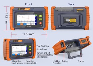 Vlastnosti *OTDR: testování a měření optických tras (26/24 dB, 1310/1550 nm) *VFL: vizuální kontrola přerušení a poruch vláken *OPM: integrovaný měřič optického výkonu *SLS: stabilní zdroj světla pro přesná měření