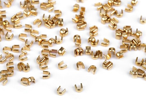Kovové koncovky se nasazují na horní konce zipu, aby z nich nevyjel jezdec. Připevníte je tak, že je nasadíte na spirálu a lehce přicvaknete kleštěmi. [Koncovky se hodí pro spirálové a kovové zipy, nejsou vhodné pro kostěné zipy.]