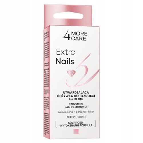 Kondicionér na nehty Extra Nails je tužící báze, pečující kondicionér a lak v jednom. Poskytuje okamžité zpevnění a ochranu nehtů a dodává jim přirozenou zdravou barvu v odstínu pastelově růžové.