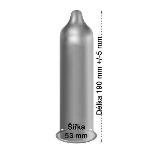 Rozměry: nominální šířka - 53 mm délka kondomu - 190mm oddalující účinek transparentní barva material latex