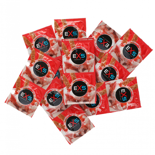 EXS Flavoured strawberry Sundae jsou úžasně tvarované kondomy s příchutí jahodové zmrzliny. U žaludu širší a u kořene uzší a díky tomu perfektně drží. Lubrikované na silikonové bázi.