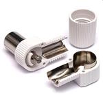 Konektor IEC dutinka - úhlový. Konektor slouží pro ukončení anténního kabelu na výstup modulátoru. Vnitřek konektoru je kovový ! Konektor je úhlový. Určen pro větší průmery koaxiálních kabelů.
