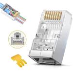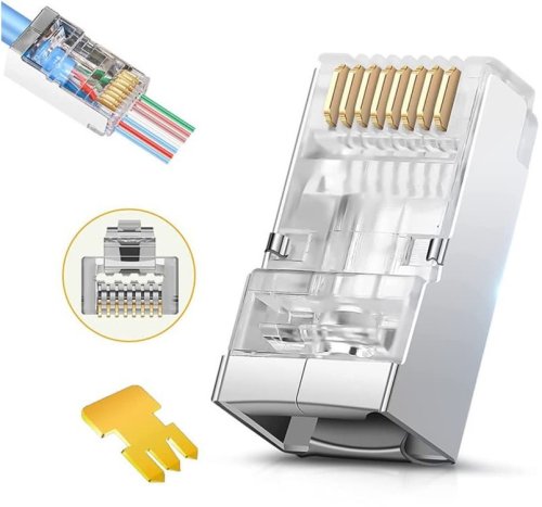 Průchozí datový konektor Wire Cross RJ45 využijete pro strukturovanou kabeláž vodiče typu drát. Má stínění FTP a spadá do třídy CAT6. Zapojení 8P8C zajišťuje rychlé a snadné krimpování konektoru na datový kabel. Všech 8 vodičů protáhnete skrz konektor, nakrimpujete a ostrým břitem v rukojeti krimpovacích kleští zaříznete přebytečnou délku. Vodič má tak vždy správný kontakt s pinem. Velkou výhodou je také to, že máte dokonalý přehled o pořadí vodičů. Těšit se můžete na výdrž až 1 000 zapojení.