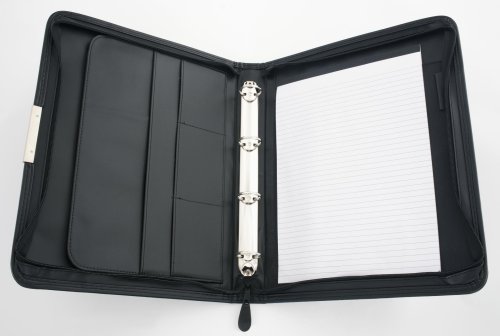 Konferenční desky z černé syntetické kůže uzavíratelné na zip Obsahují poutka na psací potřeby a různé přihrádky Součástí je poznámkový blok a čtyřkroužková mechanika Barva: černá