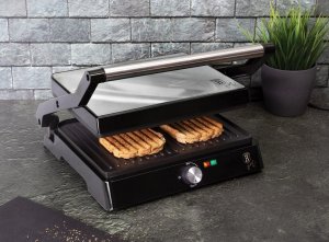 - elektrický domácí kontaktní gril z nerezové oceli- flexibilní použití, skvěle kombinuje stolní gril pro přípravu masa a panini gril na přípravu baget a sendvičů- ideální pro grilování masa, steaků, …