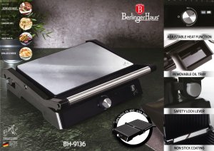 Kontaktní gril s nepřilnavým povrchem 2000 W Royal Black Collection BH-9136