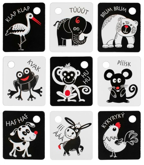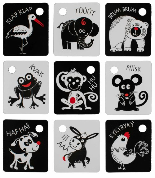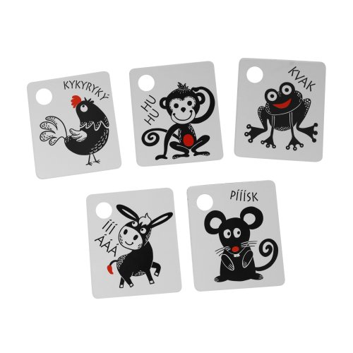 Kartičky jsou baleny po 9 kusech, vyrobeny z českých materiálů. V každé kartičce je otvor pro zavěšení. Součástí balení je plastový kroužek. Tyto kartičky zvyšují schopnost a podněcují dětskou přirozenou zvídavost, rozvíjejí dětskou motoriku, poznávání zvířátek.