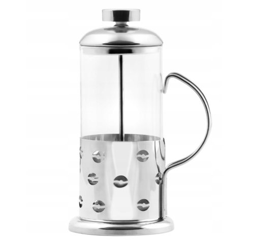 Kvalitní skleněná spařovací jednotka s pístem, který dokonale odděluje fusy od zbytku nápoje. Objem1000 ml je ideální pro přípravu kávy nebo čaje pro více osob najednou a dobře profilovaný výtok konvice vám umožní pohodlně nalít nápoj do šálků. Čištění a mytí pod tekoucí vodou. Materiál nerez, sklo. Objem 1000 ml, průměr 12 cm, výška 23 cm. EAN 5902041304398