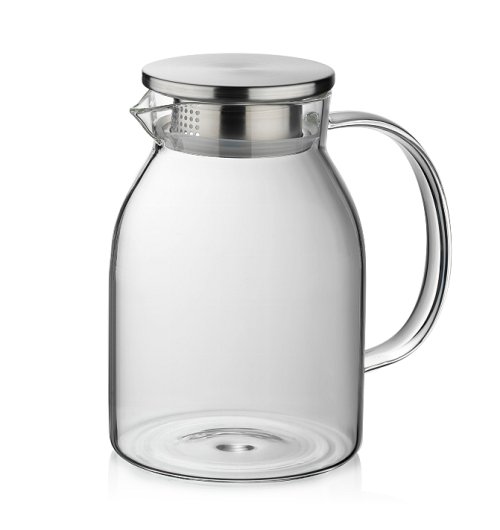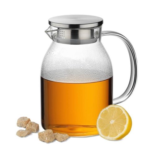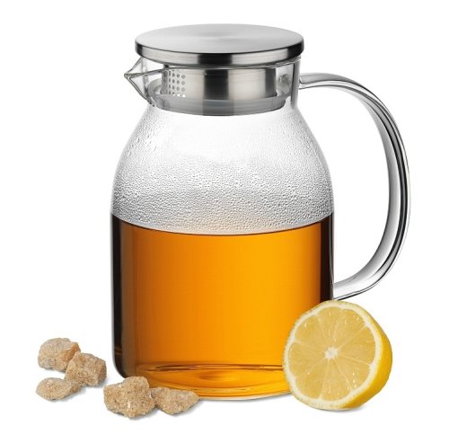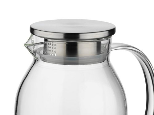 • materiál: žáruvzdorné borosilikátové sklo- prvotřídní kvalita zpracování- víko z ušlechtilé nerezové oceli 18/10- silikonové těsnění ve víku zabraňuje vniku hmyzu nebo nečistot do nápoje- pootáčením víčka můžete měnit 2 druhy otvorů pro nalévání (viz obrázky)- lze jej tedy použít jako sítko, popřípadě použít větší otvor, pokud chcete nápoj nalévat i s ovocem, bylinkami atd..- konvice je ideální pro přípravu čaje, domácích limonád, ledového čaje či koktejlů nebo jako karafa k servírování vody s ovocem, atd..- výborně se hodí pro studené i horké nápoje- dostatečně široké hrdlo umožňuje konvici bez problému naplnit kostkami ledu, většími kousky ovoce, atd..- objem: 1.75 l- výška: 21 cm- značka: KELA