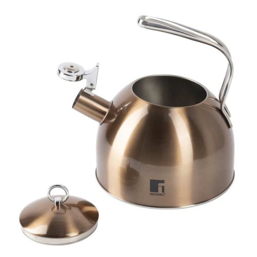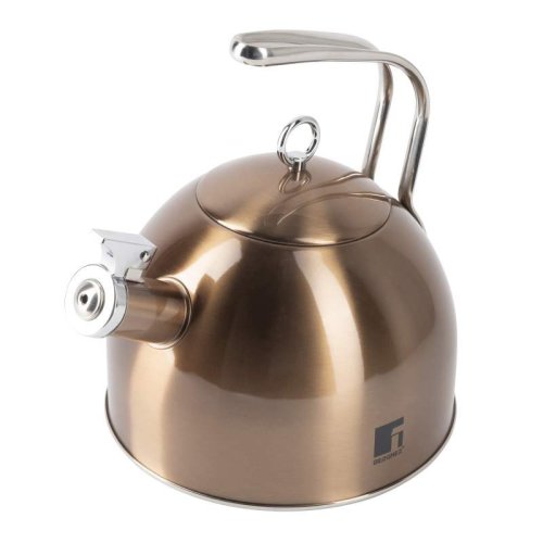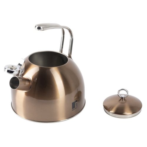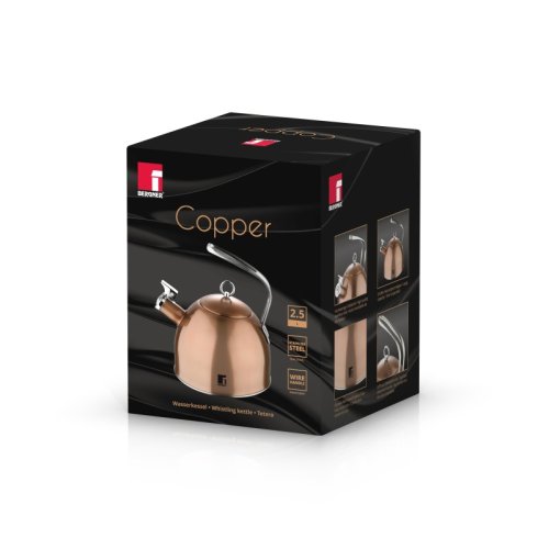• 2,5L pískací konvice.• Vyrobeno z odolné nerezové oceli.• Vhodné pro všechny zdroje tepla včetně indukce.• Vnější tělo v měděné barvě. • Nerezová drátěná rukojeť.• Snadné čištění. Připravte si lahodné čaje nebo kávu s naší klasickou pískací konvicí o objemu 2,5 l vyrobenou z odolné a odolné nerezové oceli, která při dosažení bodu varu píská. Díky nerezové drátěné rukojeti můžete konvici bezpečně zvedat a přenášet všude tam, kde chcete podávat své oblíbené čaje. Používejte jej, kdekoli chcete, protože je vhodný pro jakoukoli varnou desku, včetně indukce. Elegantní design v měděné barvě a zakřivené linie pro snadné čištění. Pro prodloužení životnosti výrobku se doporučuje ruční mytí.