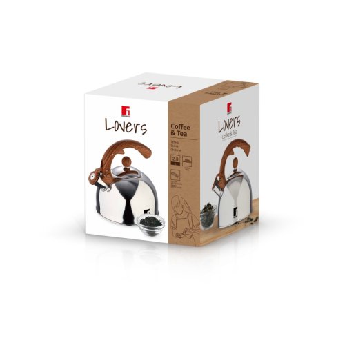 Elegantní a praktická – tato pískací konvice o objemu 2,3 litru spojuje moderní materiály s přírodním vzhledem. Díky měkké povrchové úpravě a detailům s dřevěným efektem se stane stylovým prvkem každé kuchyně.