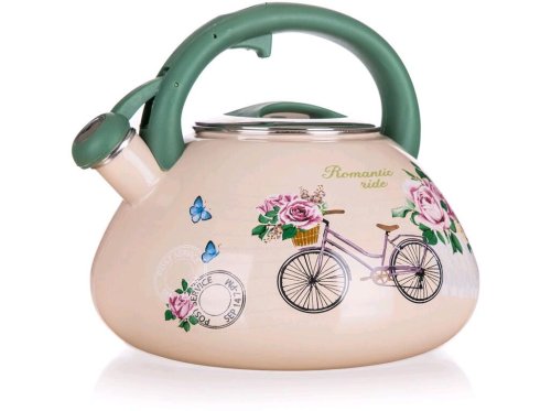 Smaltovaná konvice pískací je vyrobena z ocelového plátu s 2vrstvým smaltovaným nástřikem a dekorem. Má plastové držadlo barevně laděné do designu konvice, snímatelnou píšťalu a dno opatřeno piktogramy o použití konvice.