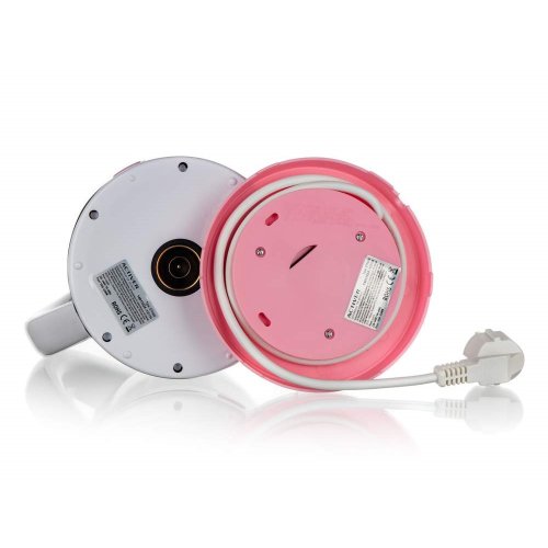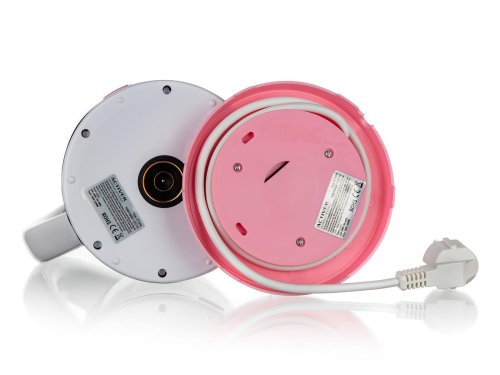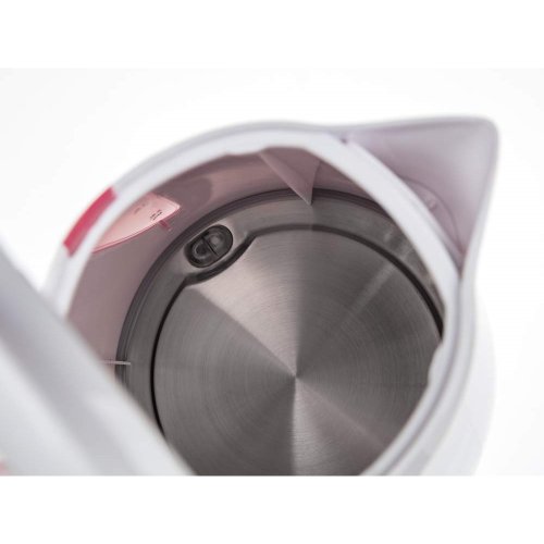 Varná konvice, s plochým dnem z nerezové oceli, je nedílnou součástí každé kuchyně. Má moderní design s průhledovým ukazatelem množství vody a ochranou proti přehřátí. Základna se středovým konektorem - 360 stupňů, vyjímatelný filtr, automatické / manuální vypnutí a světelný indikátor provozu. Dodávána v růžovo - bílé barvě.