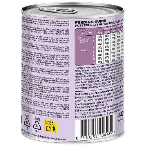 Toto mokré krmivo se řídí stejnou důvěryhodnou výživovou filozofií jako Eukanuba suché krmivo. Nabízí chutnou mokrou alternativu nebo doplněk – ideální pro psy, kteří dávají přednost rozmanitosti nebo potřebují dodatečnou hydrataci.