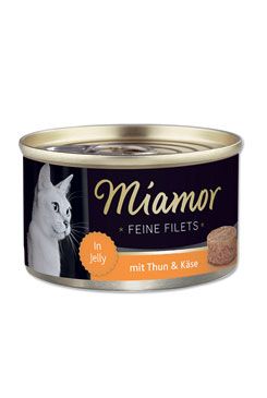 Konzerva s filetami z tuňáka a sýrem, doplňkové krmivo pro dospělé kočky.