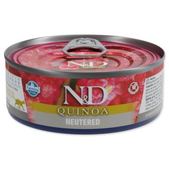 N&D Quinoa Neutered Pork je kompletní krmivo pro dospělé kastrované kočky.