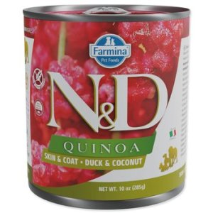 Kompletní vlhké krmivo pro dospělé psy. Farmina N&D Quinoa Duck & Coconut je krmivo pro zvláštní účely výživy určené k omezení intolerance určitých komponentů a živin.