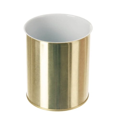 Materiál pocínovaný plech, uvnitř bílý lak vhodný na potraviny, vně zlato lak.