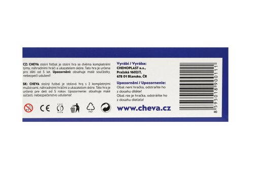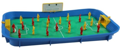 Společenská hra kopaná. Hra obsahuje dva kompletní týmy, náhradní hráče a ukazatele skóre. Rozměry hry jsou 5,5 x 30 x 51 cm. Hračka je vhodná pro děti od 4 let.