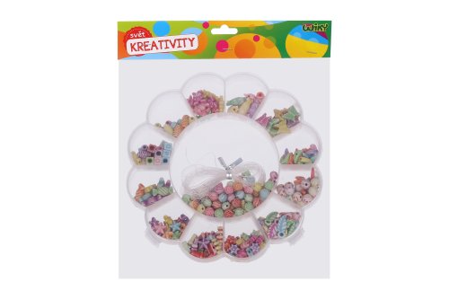 Korálkový set o hmotnosti 80g ve tvaru květiny. 13 různých druhů korálků + provázek.