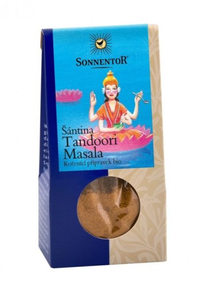 V „ŠántiněTandooriMasale“ je zachycen barevný život Indie. Zázvor, koriandr, cejlonská skořice, muškátový květ a hřebíček rozmíchají ohňostroj chutí, kurkuma a paprika vykouzlí v ostré kořeněné směsi sytě oranžovou barvu. Skvěle se hodí na grilování nebo na pokrmy připravované v troubě či na pánvi. Anebo zcela klasicky smíchané s jogurtem jako marináda na neodolatelné Tandoori-kuře.