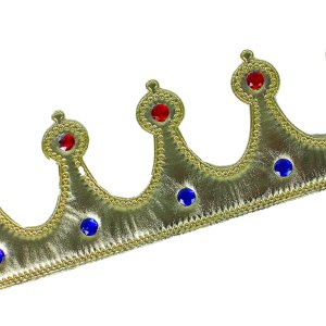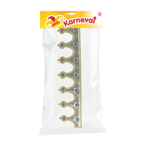 Karnevalová královská koruna, látková, zdobená kamínky. Na suchý zip. Délka cca 53 cm.