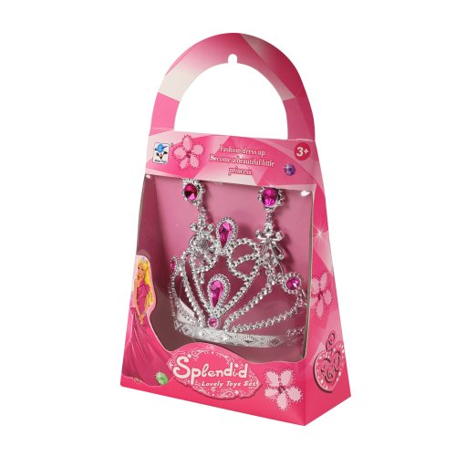 Krásná korunka stříbrné barvy s náušnicemi pro všechny malé princezny. Oba doplňky jsou zdobeny nepřehlédnutelnými růžovými ozdobnými kamínky. Perfektní sada ke kostýmu! Doporučeno pro děvčata od 3 let.