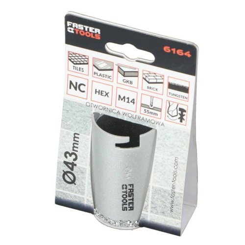 Vyrobeno z oceli s wolframovým povlakem Hloubka vrtání 55 mm Závit M14 Určeno pro vrtání bez příklepu Pro použití při vrtání otvorů do: glazury, cihlová stěna, lehké stavební materiály,sádrokartonové …
