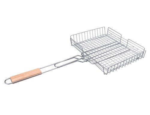 Grilovací koš BARBECUE GARDEN jsou vhodné pro přípravu většího množství kusů masa, ryb a zeleniny. Tři výškově stavitelné polohy zajišťují ideální umístění připravovaného pokrmu. Koš je vyroben z pochromované oceli s rukojetí z gumovníkového dřeva, které je velmi odolné. Rozměry: délka 67 cm, šířka 32 cm, výška 26,6 cm, hloubka 6 cm. Barva: stříbrná.