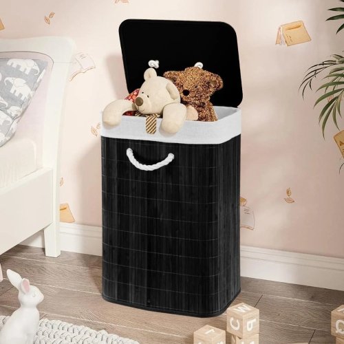 Představujeme odolný koš na prádlo z bambusu a látky s kovovými výztuhami pro stabilitu. Jeho pohodlné ovládání víka jednou rukou udržuje pachy na uzdě a dostatek úložného prostoru udržuje prostředí bez nepořádku. Snadno se udržuje díky odnímatelnému vložnému sáčku, který lze prát v pračce, a má rukojeti pro snadné přenášení, takže tento koš nabízí praktičnost a eleganci do jakéhokoli prostoru.