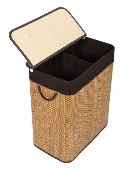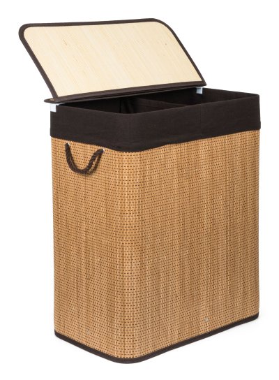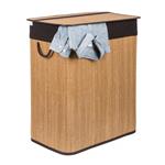 Bambusový koš G21 s pevným víkem má pratelnou látkovou vložku, rozdělenou na dva samostatné oddíly. Špinavé prádlo tak můžete třídit už před praním a umístit zvlášť kousky podle materiálu nebo barvy.