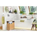 Jak vybrat nejlepší koš na špinavé prádlo? Co se materiálu koše týče, doporučujeme jednoznačně bambus. Je odolný vůči vlhkosti, takže jej můžete bez obav umístit do koupelny nebo servisní místnosti s pračkou. Zároveň je i vizuálně velmi příjemný – kombinace přírodního materiálu a barevně sladěné vložce a držadlům evokuje pocit čistoty, navíc se i hodí k jakémukoliv interiéru.