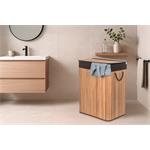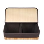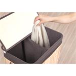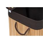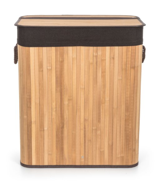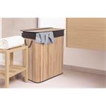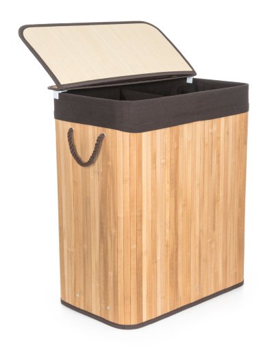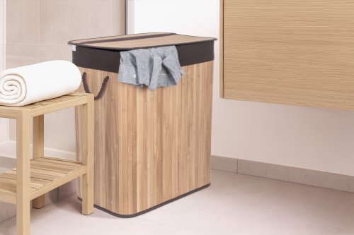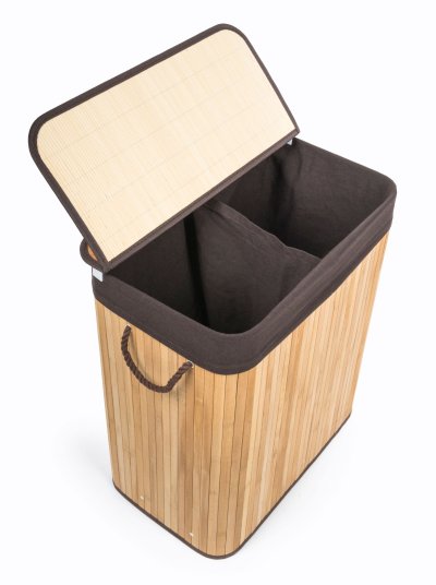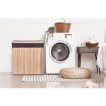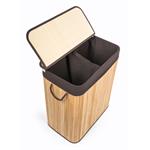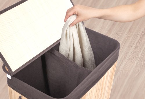 Bambusový koš G21 s pevným víkem má pratelnou látkovou vložku, rozdělenou na dva samostatné oddíly. Špinavé prádlo tak můžete třídit už před praním a umístit zvlášť kousky podle materiálu nebo barvy.